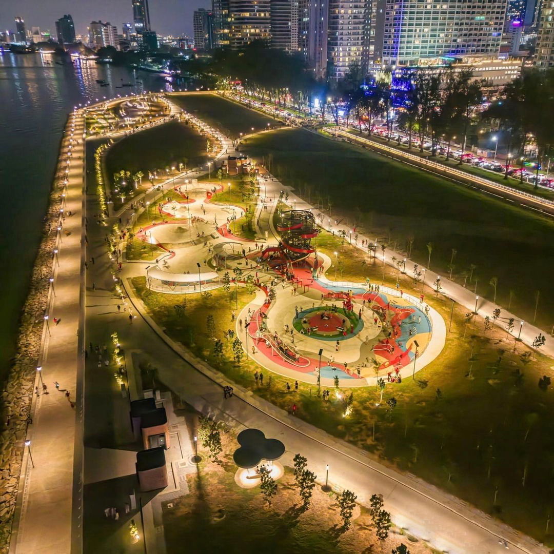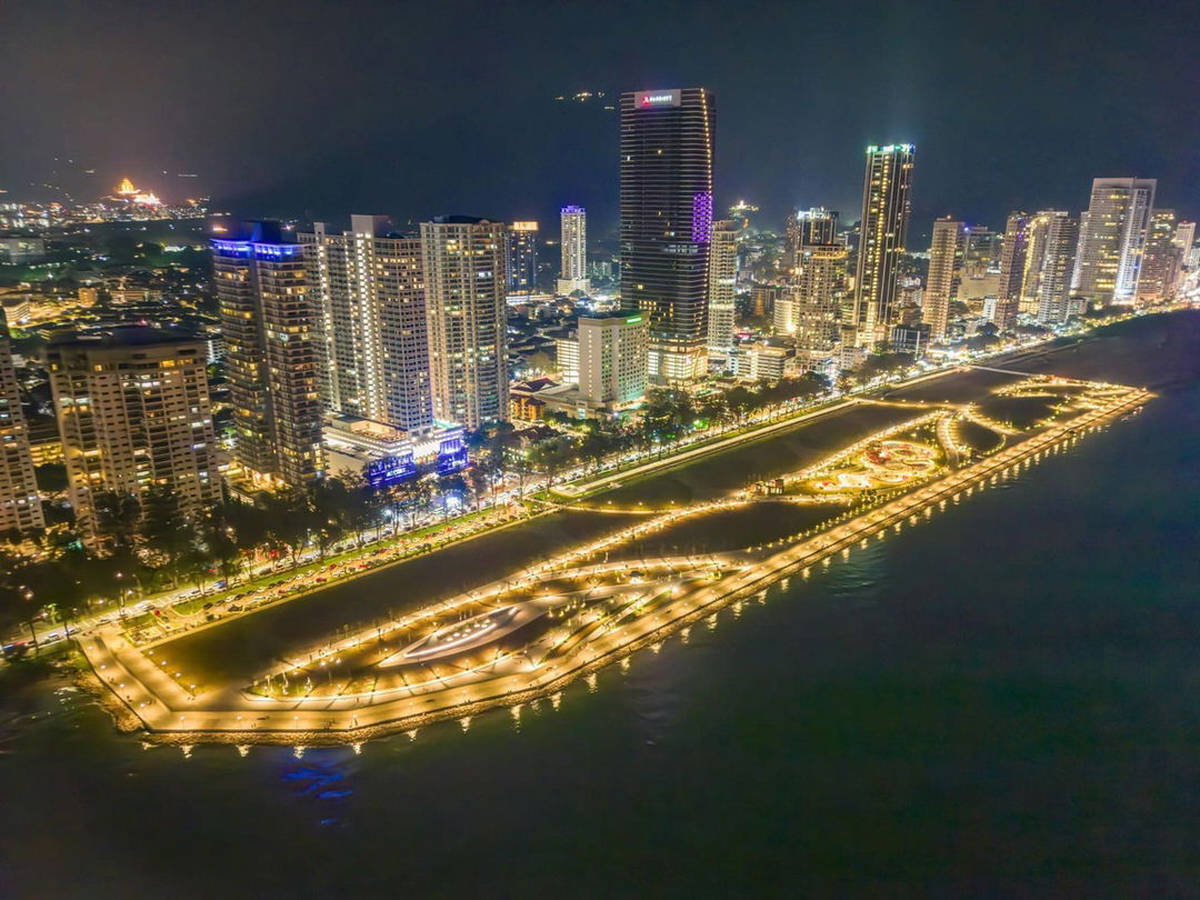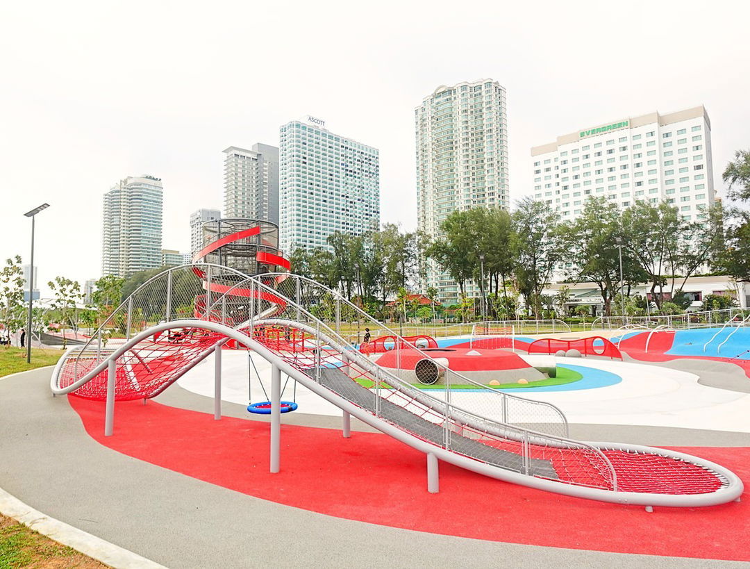 Gurney Bay, formerly Gurney Wharf, is a seafront park along Gurney Drive. It spans 24.28 hectares and is expected to be completed by 2025, featuring four zones: beach, coastal grove, water garden, and lifestyle area. Initially planned for residential development, the Penang state government repurposed the land into a public park. Phase 1 opened in 2024, offering amenities like a seafront promenade, playground, and skate park adorned with 1,500 trees and 10,000 shrubs. Phase 2, scheduled for completion in 2025, will include retail outlets and the relocation of the Gurney Drive Hawker Centre.