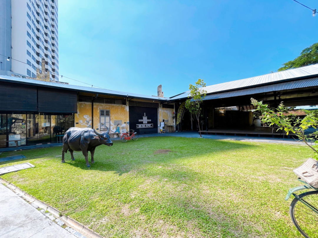 Hin Company Ltd was one of the many private companies awarded motorbus licenses to operate on the island after World War II. To house and maintain their buses near their main town operations base, the Hin Company built the bus depot along Brick Kiln Road (now known as Jalan Gurdwara) in 1947. Hin Bus Depot is a former bus depot in Penang, Malaysia. The shabby, dilapidated building came into the possession of a company owned by three families in 2010. It was only when Ernest Zacharevic's 2014 Art is Rubbish is Art exhibition that the space took its first transformative steps.