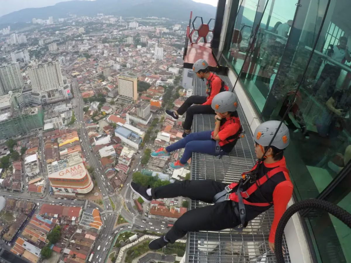 Today, KOMTAR attracts thrill seekers with high-altitude adventures, namely the World's First Tower Curved Skywalk (The TOP's Rainbow Skywalk), the World's Highest Ropes Course Challenge (The Gravityz) and the World's First Free Standing Vertical Drop Slide (Tech Dome Penang), which are part of the 7 World Wonders of Penang.